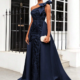 Modna hiša: boutique aleksandraPrekrasna večerna obleka, nežne a-linije, s čipkastim živozcem na kožni podlagi. Posebnost obleke je dekolte z mrežico, s pošito čipko, do vratu in odrti rami.