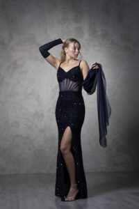 Dopolnjena z glamuroznimi rokavicami in lahkotnim šalom je idealna izbira za maturantski ples, gala dogodek ali katero koli priložnost, kjer želiš stopiti v prostor kot prava zvezda.