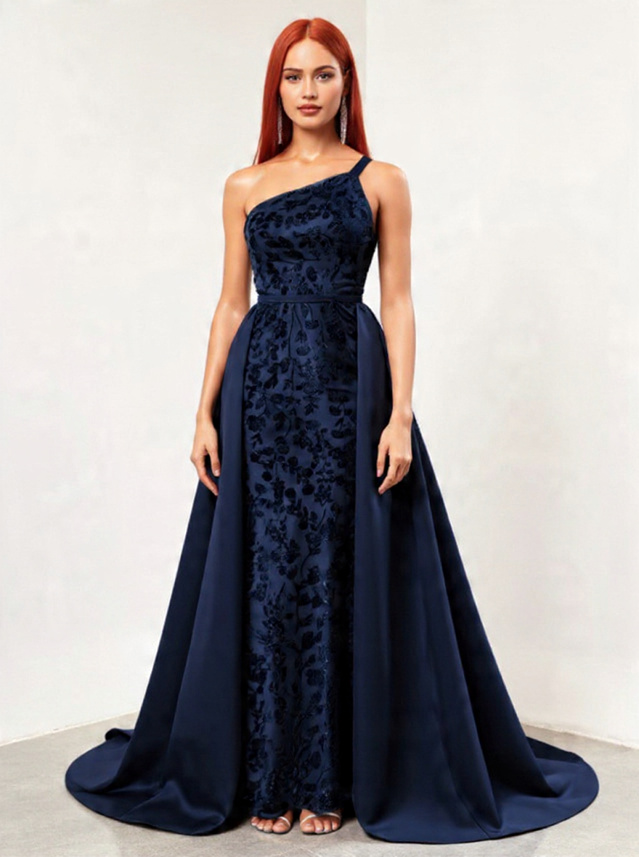 Modro bleščeča obleka Selena v obliki ribice kot spodnji del, ki ga lahko nosimo samostojno in bogato dodano saten krilo na pas, ki vas izstreli med absolutne zvezde večera.