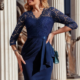 Ženstven izrez pri tej obleki se dopolnjuje s čipkastim spodnjim delom, kar daje obleki svečan videz in se zato prijetno nosi na posebnih dogodkih.
